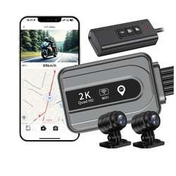 دراجة نارية عدسة مزدوجة كاميرا داش مع نظام تحديد المواقع واي فاي الكاميرات الأمامية والخلفية دقة 2K للماء حلقة تسجيل DVR