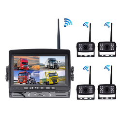 Monitor de camión de calidad HD de 7 pulgadas, sistema de respaldo de estacionamiento con 4 cámaras inalámbricas de visión trasera, función de pantalla dividida a prueba de agua IP68